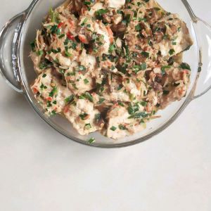 碗打入鸡蛋打散放入所有调料个韭菜根搅拌