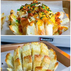 另一个馒头也切网格,表面刷上融化好的黄油,再撒点白糖