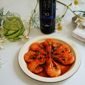 加入适量的清水,漫过大虾即可,盖上锅盖,中火焖5分钟。
