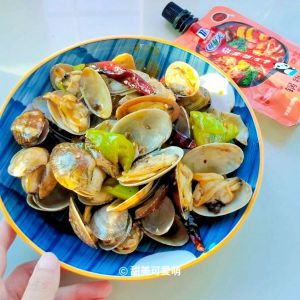 焯至花蛤张开口,即可。别焯太久,不然就老了。张口就马上捞出来!(水开后,下入花蛤也就大概12秒,它就张口了。张口很快的!)