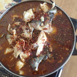 将花椒辣椒撒在鱼的表面。锅洗净置于火上,放入植物油烧至八成熟,油热冒烟时起锅浇在鱼肉干料上。这道菜就大功告成了