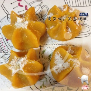 一部分包栗子馅儿,另一部分包红豆沙,最后一部分捏成花形,馅儿随意
