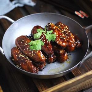 不粘锅里加入少许油,油热后放入鸡翅,用中小火煎香,如果用的普通铁锅,刚放入鸡翅的时候最好晃动一下锅子,这样鸡翅就不会粘锅了。