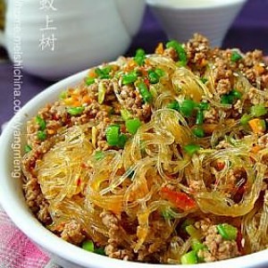 兑水,不要多,刚好到肉末边缘,我兑了小半饭碗水。放入粉丝。