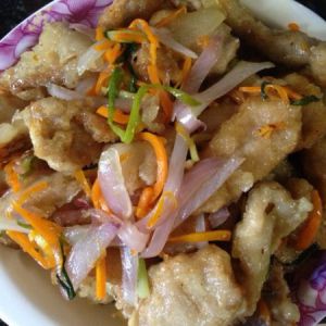 最后将炸好的肉快速入锅,拌匀快速起锅,保持肉的表皮酥