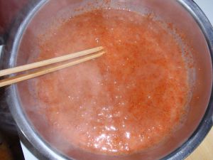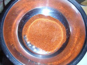 辣椒面放在没有水的盆里(一定要把盆擦干)。