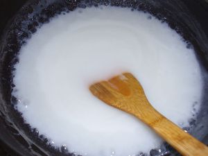 把锅里加水,取适量的江米粉(50克左右)放锅里煮开。