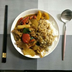 本来是要放6块咖喱块的,我不喜欢太粘稠和重咖喱味,只放了4块,味道正合我意。