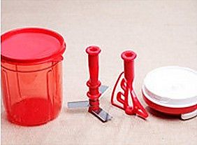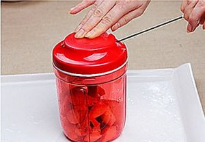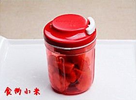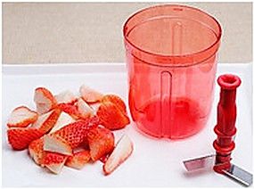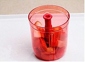 将特百惠的工具准备好,因为我们要把草莓切剁成草莓泥所以要用旋转刀