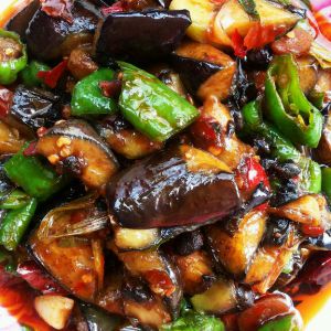 4.锅放热油烧至六成热,放入茄子炸至金黄色捞出备用。