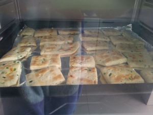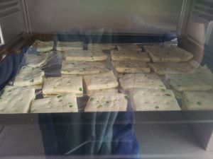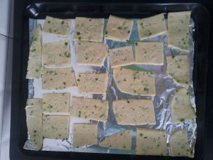 切成小块放在烤盘锡纸上.扎上小眼.防止在烤的过程中鼓起来