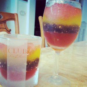 我是四种颜色同时冰的,为了节约时间,也可以先冰一层再浇入第二层再放进冰箱继续冰冻