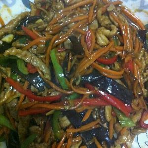 胡萝卜丝木耳丝稍稍变软,倒入肉丝