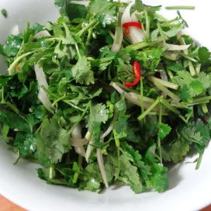 香菜去根及黄叶洗净 黄瓜洗净切丝 洋葱切丝 红米椒切圈,