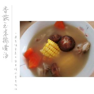 重新加水两片姜排骨放入锅中 水开 加香菇.玉米.胡萝卜 水开转小火盖好盖子1小时,这个香菇玉米排骨汤就好啦,享用吧