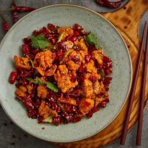 取一锅,倒入花生油加热,待油冒青烟后,下入鸡块,(油的量要没过鸡块)倒入后,定一下型,转中小火炸至鸡块表面由白变成金黄色后捞出