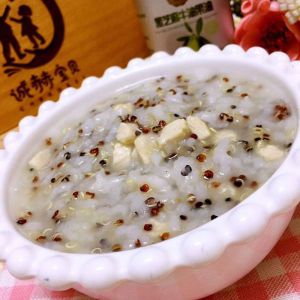食材:三色藜麦、大米、鸡肉、黑芝麻牛油果油