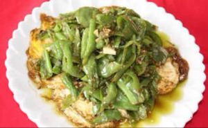 1,辣椒洗净,去蒂!拍扁,备用。2,把鸡蛋煎成荷包蛋放入盘子。(荷包蛋先不要煎的太熟)。3,锅放油,先把大蒜子爆香,放辣椒,炒蔫,放荷包蛋一起翻炒,放红烧酱油,(普通酱油也行,红烧酱油,颜色好看而已。)盐,豆瓣酱,23勺,翻炒,最后鸡精,出锅!注意蛋不要炒碎了!