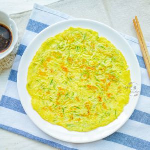 舀一勺面糊倒入锅中,用铲子将面糊铲开,摊薄,微小火煎。