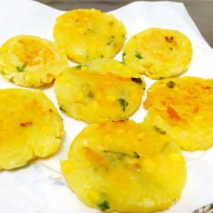 土豆蒸熟压成泥,所有材料放一起搅拌,做成一个个小圆球,锅里放油小火加热,将土豆泥小球压扁放锅里,两面煎黄即可。