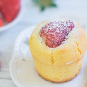 注意观察上色情况,马芬表面微微上色,草莓有点爆浆即可出炉。