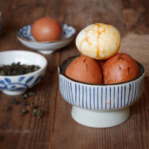 放入锅中煮熟。煮熟后,用勺子将蛋壳稍微敲碎备用