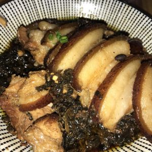 泡好的五花肉晾干,均匀切片,用生抽,糖,蚝油,葱姜蒜,腌制半小时,入摆盘,然后放入梅干菜,姜丝,冰糖,些许生抽上锅蒸1个小时以上,静置一个晚上味道更美