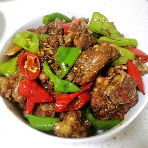水炖到只剩3/1的时候转大火收汁,快收好汁时放入青红辣椒