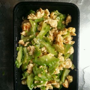 苦瓜翻炒几分钟后,放鸡蛋、盐即可