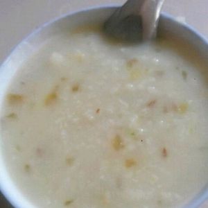 锅内放米水加多点,然后把切碎的皮蛋和瘦一起放进去,加油,盐,一起煮熟
