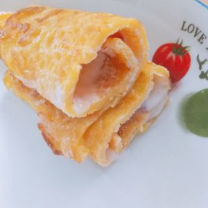 然后卷起来就是这样,我做了五个饼,一个人全吃完了。