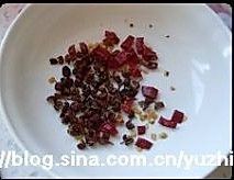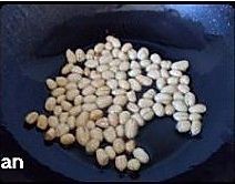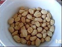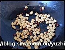 将炸好的花生米盛出来,锅内留底油。之所以将花生米炸成浅黄色而不是刚刚好的颜色,是因为一会炸好的花生还要下锅炒,如果将花生米炸的火候正好的话,那一会再炒的时候花生米就火大了!