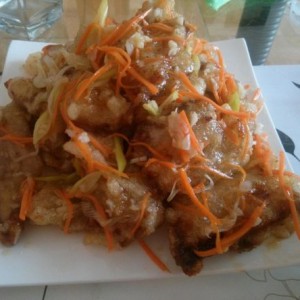 全部炸好后待油温9成热时全部再入锅炸至卖相橘黄。先全部夹出再关火噢!