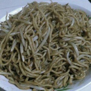 放入炒面,加盐,较多酱油,然后用两只手抓住筷子翻炒,搅拌均匀,再放入孜然粉和鸡精即可