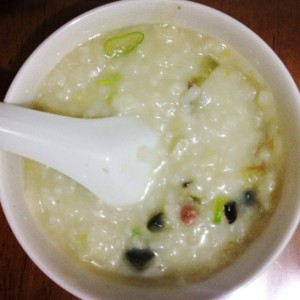 盛好一碗撒点儿葱花,美味的皮蛋瘦肉粥好了!