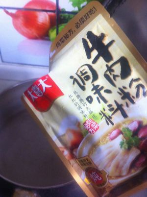 锅里放少量水,加入大喜大牛肉粉煮化成高汤