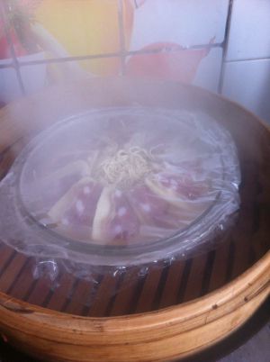 包上保鲜膜,水开后上笼蒸20分钟