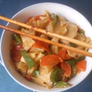 面片事先煮好,捞出来凉水浸泡,根据个人口味,也能不浸泡,放入菜锅里翻炒