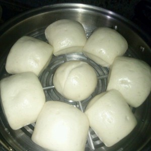 把面团从揉面袋拿出来做成自己喜欢的造型放入蒸锅中,冷水入锅小火加热一分钟,关火,让馒头胚再醒发15分钟(如果是夏天则不需要加热哈),再重新开小火五分钟后转大火蒸十五分钟关火,此时千万不要开盖,闷五分钟,白胖胖的馒头就可以出锅啦!