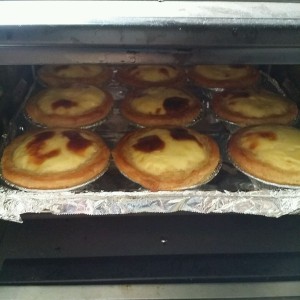 时间差不多,蛋挞皮上出现焦糖皮后关上火,单独下火再烤10分钟。这一步的目的是让蛋挞皮酥脆。