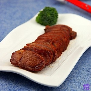 将叉烧肉取出,再刷一次蜂蜜,再烤10分钟就可以了,烤好的叉烧肉放凉,就可以切开装盘了。