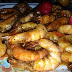 葱姜蒜炒出香味,把炸好的虾倒入锅,翻炒加糖、盐,糖盐的比例3:1,翻几下出锅前放少许味精,生抽。