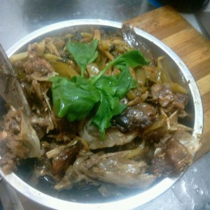 所有材料弄好了,十分钟后热锅放油,大火,放鱼头爆炒。