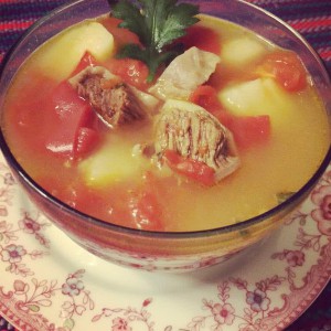 炒过得牛肉倒入清水熬煮,放入切好的土豆番茄