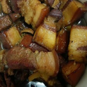 冷锅里放油及冰糖,中火加热至冰糖融化变成泡泡状,下入肉块和生姜花椒八角桂皮翻炒