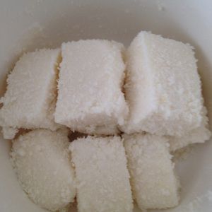 第二天取出倒口切块,切成我喜欢的麻将型哈哈。