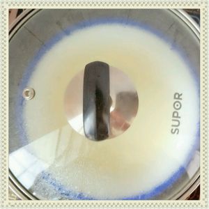 盖上盖静置15分钟左右(为了保持温度,把豆浆盆坐在热水的锅中,如果夏天温度足够,可省略这步)