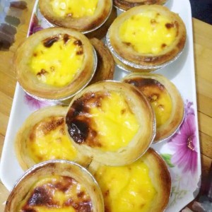 出锅的时候一定要注意颜色,蛋挞皮看上去分层了,有焦糊色就可以了