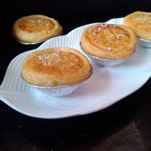 做好的蛋挞液倒入挞皮里,装到八分满。