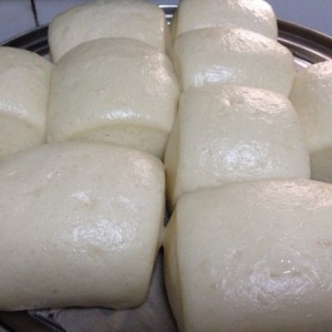 揉好揉成条棍状,再快刀切下小段摆锅上灶,锅里记住放冷水,摆好馒头盖上锅盖进行二次发酵,看到馒头变成原来体积的1.5倍大就可以开火蒸了